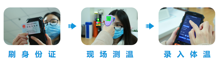智能錄入取代手工登記,快速登記居民身份信息、測(cè)溫結(jié)果。