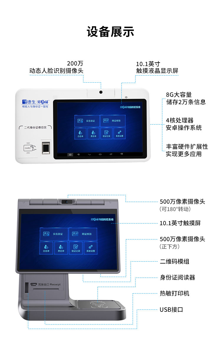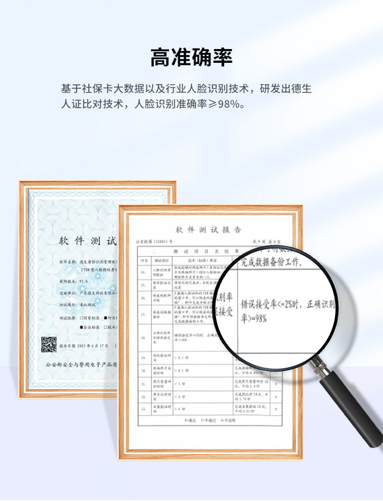 德生AI門崗實(shí)名易品牌專注于人證識(shí)別系統(tǒng),人證合一核驗(yàn)系統(tǒng),身份證采集手持終端,人與身份證合一閘機(jī)
